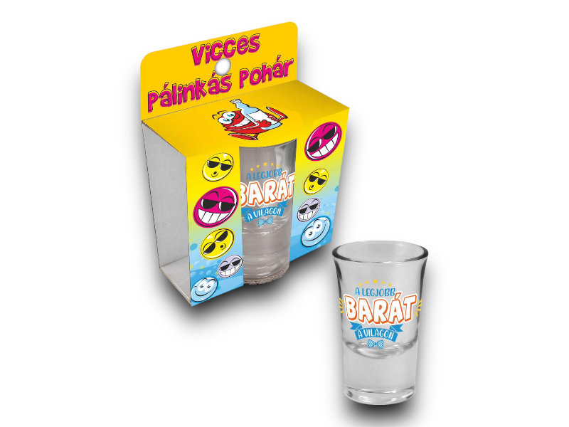 Pálinkás pohár'Barát a világ.'