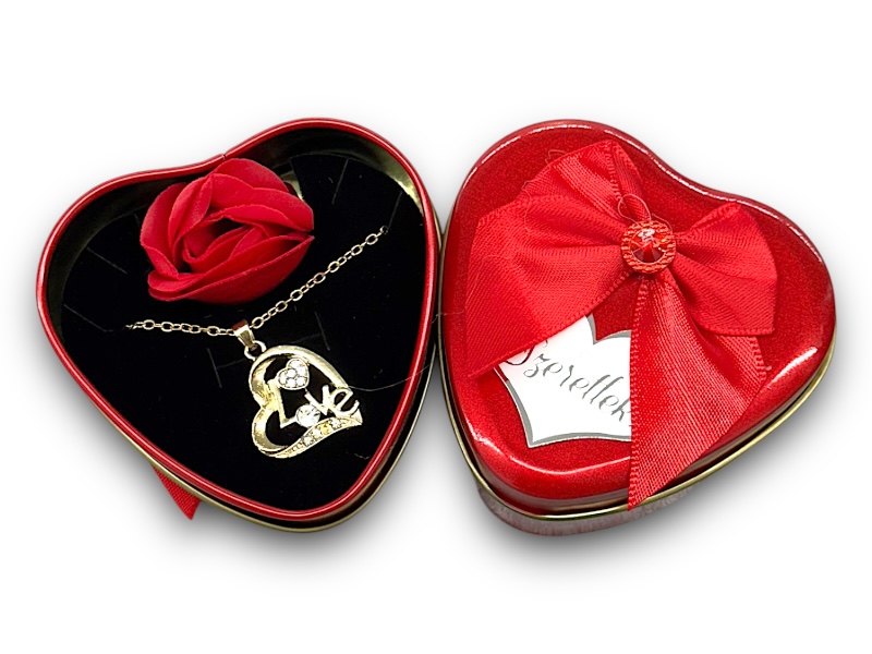 Leírás: random nyaklánc minta fém ékszertartó dobozban