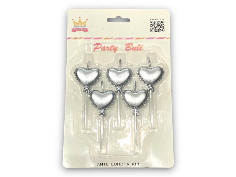 Gyertya ezüst szív 5pcs 897350
